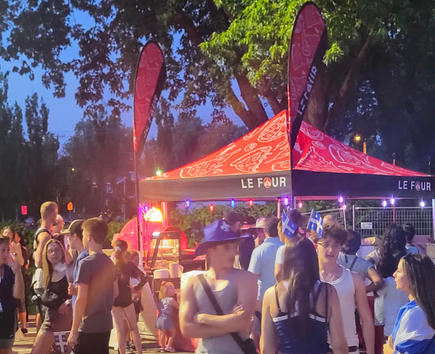 Service de traiteur mobile complet. Choix variés de pizzas au four à bois.